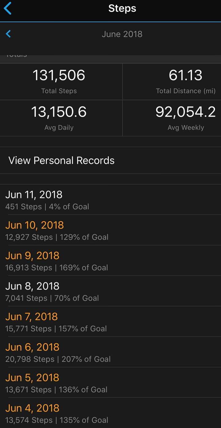 –> Daily average steps were 13,150 each day to achieve total weight loss of 11lbs.